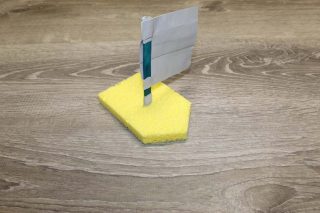 • Step 3: Make the sail. Lay down a piece of duct tape, then stick a second piece of next to it also upside down but overlapping. It should be about the same as the width as the sponge. Stick a second layer of tape down over the first, so that the sticky side faces down, and the sail is smooth on both sides.