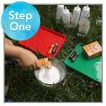 Grab the tray from the freezer and head outside with both the tray and the bottles full of food coloring.