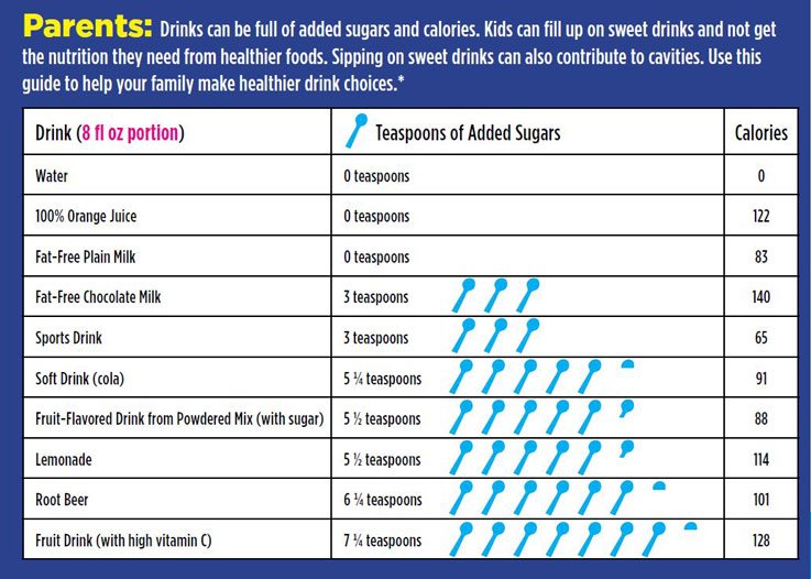 Don’t keep sweetened drinks at home; make cold water available instead. Sweetened drinks often contain added sugar and offer little or no nutrients.